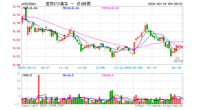 2月10日,医药ETF嘉实(515960)开盘跌0.47%,报0.843元。医药ETF嘉实(515960)重仓股方面,药明康德开盘跌0.01%,恒瑞医药涨0.02%,迈瑞医疗跌0.01%,爱尔眼科跌0.37%,云南白药涨0.00%,新和成涨0.00%,华东医药涨0.22%,复星医药涨0.19%,百济神州涨0.00%,康龙化成跌0.07%。