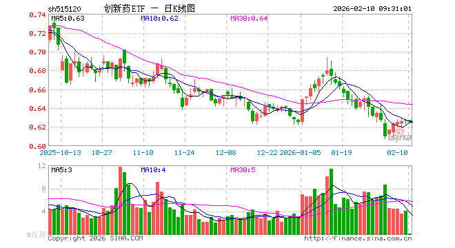 2月10日,创新药ETF(515120)开盘涨0.00%,报0.627元。创新药ETF(515120)重仓股方面,药明康德开盘跌0.01%,恒瑞医药涨0.02%,华东医药涨0.22%,复星医药涨0.19%,科伦药业涨0.00%,百济神州涨0.00%,长春高新跌0.07%,康龙化成跌0.07%,泰格医药涨0.00%,艾力斯涨0.16%。