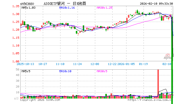 2月10日,A500ETF银河(563660)开盘跌1.24%,报1.279元。A500ETF银河(563660)重仓股方面,宁德时代开盘跌0.99%,贵州茅台涨0.00%,中国平安涨0.01%,中际旭创跌0.78%,紫金矿业涨0.91%,招商银行涨0.03%,新易盛涨0.52%,美的集团涨0.06%,兴业银行涨0.00%,长江电力涨0.00%。