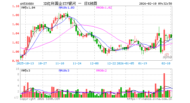 红利国企ETF银河(530880)业绩比较基准为上证国有企业红利指数收益率,管理人为银河基金管理有限公司,基金经理为黄栋,成立(2024-10-30)以来回报为6.14%,近一个月回报为1.04%。