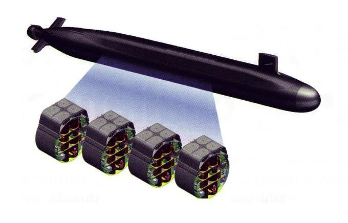 “哥伦比亚”级放弃了上一代“俄亥俄”级战略核潜艇所采用的单根导弹发射管逐一布置方式,转而使用每 4 根发射管组成一组的模块化通用导弹舱设计。