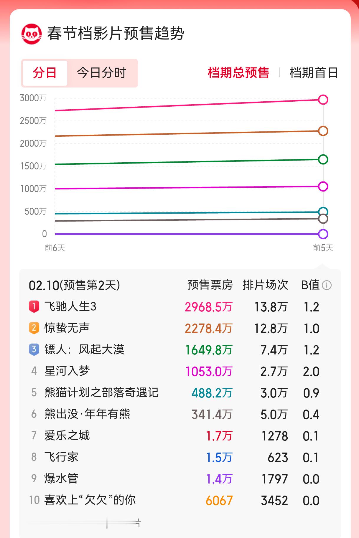 一觉醒来,《飞驰人生3》的预售票房领先优势居然还拉大了,而且排片b值还是1.2(0.8~1.2为正常区间,数字越大越表示排片供不应求),长势喜人!再结合包场情况一看,真的都是路人散买托举的真国民底盘,挺好!我也贡献了15张原价票支持了一下我家林臻东