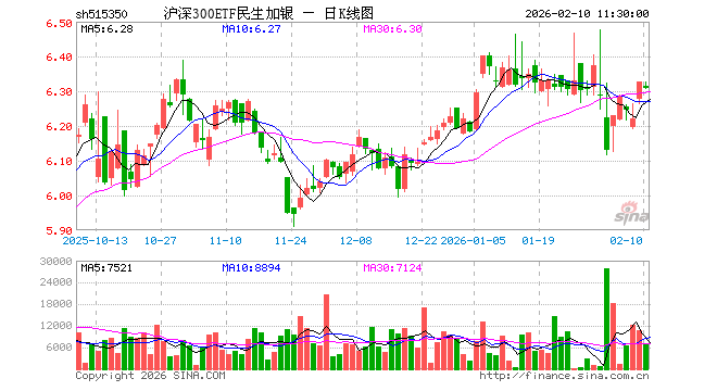 2月10日,截止午间收盘,沪深300ETF民生加银(515350)跌0.27%,报6.309元,成交额441.57万元。沪深300ETF民生加银(515350)重仓股方面,宁德时代截止午盘跌0.76%,贵州茅台跌0.89%,中国平安跌0.90%,中际旭创跌0.48%,紫金矿业涨0.28%,招商银行跌0.23%,新易盛涨0.99%,美的集团涨1.00%,兴业银行跌0.21%,长江电力涨0.26%。