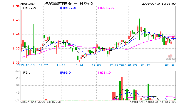 2月10日,截止午间收盘,沪深300ETF国寿(510380)涨0.00%,报1.394元,成交额526.16万元。沪深300ETF国寿(510380)重仓股方面,宁德时代截止午盘跌0.76%,贵州茅台跌0.89%,中国平安跌0.90%,中际旭创跌0.48%,紫金矿业涨0.28%,招商银行跌0.23%,新易盛涨0.99%,美的集团涨1.00%,兴业银行跌0.21%,长江电力涨0.26%。