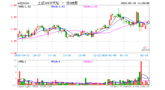上证50ETF天弘(530000)业绩比较基准为上证50指数收益率,管理人为天弘基金管理有限公司,基金经理为陈瑶,成立(2024-09-04)以来回报为43.29%,近一个月回报为-1.42%。