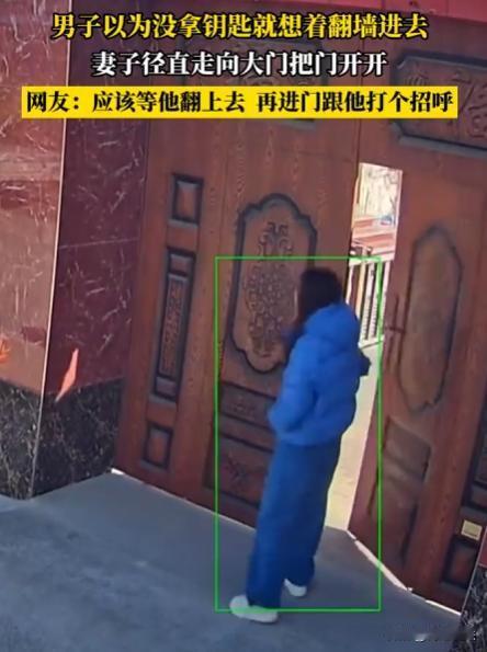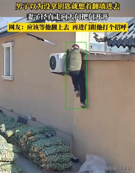 河北,一男子回家忘带钥匙,瞧着院墙不高便打算翻墙进屋。他站在玉米袋子堆上,双手扒住墙头用力,却怎么也撑不起身体,双脚乱蹬也搭不上墙,翻墙动作十分狼狈。这时妻子回来,没打招呼只是冷眼旁观,随后径直打开大门。男子正手忙脚乱翻墙,听到妻子说门开了,笑骂妻子是冤家故意看笑话,最后只好下来与妻子一同进屋。 本信息来源于:大象新闻、 这天,丈夫风风火火地往家赶,到了家门口,一摸兜,坏了!钥匙忘带了。他站在门口,心想这可咋整? 他抬头瞅了瞅自家院墙,不算高,心里顿时有了主意:翻墙进去! 他麻溜地跑到墙根,搬来几个玉米袋子,一个一个往上摞,费了好大劲,终于堆成了一个小山包。 他小心翼翼地站上去,双手使劲扒住墙头,双脚用力往上蹬,想着赶紧翻过去。 可这身体就像不听使唤似的,怎么都撑不起来,他双手死死扣住墙头,胳膊上的青筋都暴起来了,双脚在空中乱蹬,那姿势要多滑稽有多滑稽! 就在他累得气喘吁吁,快要坚持不住的时候,妻子回来了。 妻子远远就看到丈夫在墙头上挣扎,心里觉得又好气又好笑,她没吭声,慢慢走到门口,站在一旁冷眼旁观。 丈夫正一门心思翻墙,根本没注意到妻子回来了。 妻子看着丈夫那狼狈的样子,忍不住想逗逗他,她故意不吭声,就那么静静地看着。 丈夫使出浑身解数,还是翻不过去,急得满头大汗,把衣服都湿透了,他一边翻一边喊:哎呀,这咋回事,今天咋这么倒霉! 妻子终于忍不住了,把大门打开了,然后,她双手抱在胸前,似笑非笑地看着丈夫,说:门开了。 丈夫正翻得投入,突然听到妻子的声音,吓了一跳。他扭头一看,发现妻子站在旁边,门还开着,顿时又羞又恼。 他笑骂道:你个冤家,故意看我笑话!嘴上虽然这么说,但脸上还是露出了笑容,他从玉米袋子上下来,拍了拍身上的土,走到妻子身边,说:你咋不早点开门,害我在这丢人现眼。 妻子白了他一眼,说:谁让你不带钥匙,该! 丈夫挠挠头说:行了行了,别生气了,咱进去吧。 妻子也没再计较,两人一起进了屋,进屋后,丈夫坐在沙发上,还在回味刚才翻墙的事,忍不住又笑了起来。妻子坐在旁边,也跟着笑。 这事,后来在亲戚朋友间传开了,大家都觉得这对夫妻挺有意思。 有人说,这丈夫太傻了,忘带钥匙还想翻墙,也不想想自己能不能翻过去。 也有人说,这妻子太调皮了,故意看丈夫笑话,不过这样的小打小闹也挺增进夫妻感情的。 还有人觉得,这夫妻俩的生活充满了乐趣,不像有些夫妻,整天为了一些鸡毛蒜皮的小事吵架,他们这种相处方式,让人羡慕。 但也有人提出不同看法,说这丈夫忘带钥匙翻墙,万一摔下来受伤了怎么办,太危险了。 妻子虽然是想逗逗丈夫,但也得考虑安全因素。 对于这些不同的声音,丈夫和妻子也有自己的想法。丈夫说:我当时就是着急进屋,没想那么多,以后可得注意安全了。 妻子说:我就是觉得他翻墙的样子太搞笑了,想逗逗他,没想到引起这么多讨论,以后我也会多考虑考虑。 大家觉得夫妻相处的方式,是应该像他们这样,偶尔来点小闹剧,给生活增添乐趣,还是应该更加稳重,避免一些不必要的麻烦呢? 对此,你怎么看? 男子准备翻墙进家 妻子直接打开大门