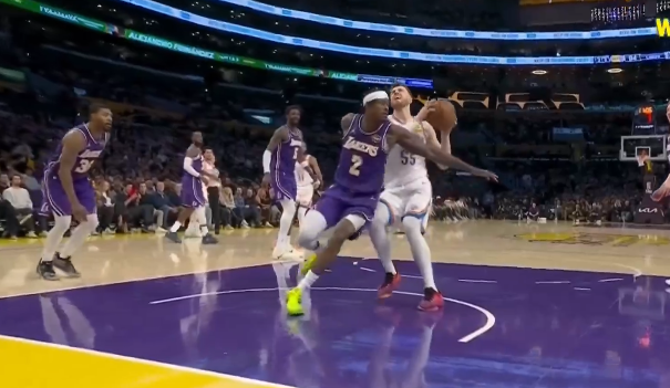 第四节比赛中,哈滕空切接球上篮造成范德比尔特犯规,湖人挑战成功改湖人球权。