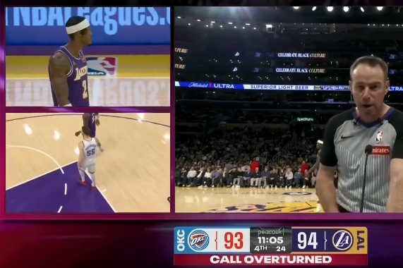 哈滕空切接球上篮造成范德彪犯规,湖人挑战成功改湖人球权