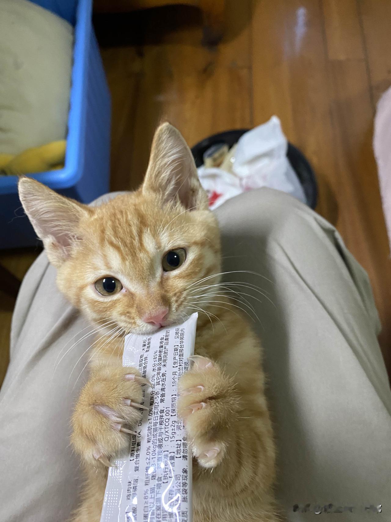 我家的橘猫-月月 2025年8月4日,朋友告诉我有个猫咪在垃圾桶旁边,我把它带回了家里。因为不懂以为她是个母猫所以取名八月小名月月!