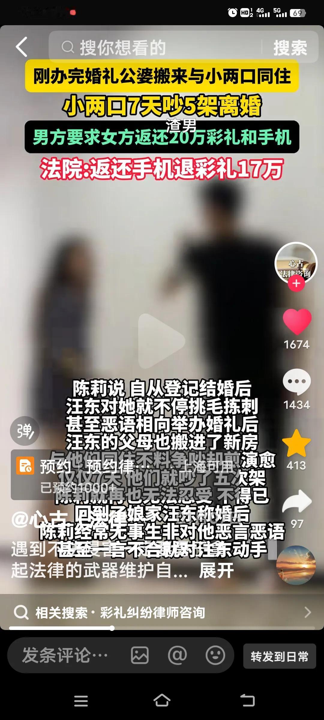 山西曾有这么一个案例。2022年,儿子刚办完婚礼,公婆就搬来和小两口一起住。从那之后,小两口争吵不断,最终走向离婚。男方要求女方返还20万彩礼和手机,法院判决女方返还17万! 这当父母的,心里怕是乐开了花吧?可儿媳妇都走了,这日子还有啥盼头呢?做儿子的本就不懂事,据陈莉(化名)说,结婚登记后汪东就对她恶语相向,有时还动手,再加上他父母同住,更是有恃无恐。第一次提离婚,法院没批准。 近日汪东又提离婚,还想要20万,这可能拿到吗?这下如他所愿了,法院判了。彩礼这事儿,就像把一碗水倒进另一碗,只能少不能多。这样的婚姻,哪经得起几番折腾!总有一些不明事理的人,非要掺和儿子的生活。难道儿子不结婚就没地方住了吗?干嘛非得跑去儿子家呢? 很多父母都不愿和儿子同住,年轻人和老年人本就观念不同。他们过得开心就好,保持距离才是关键。只要他们日子舒坦,当父母的才能安心,难道不是这个道理吗?来评论区聊聊吧!彩礼纠纷 婆家彩礼纠纷 婆家婚房纠纷