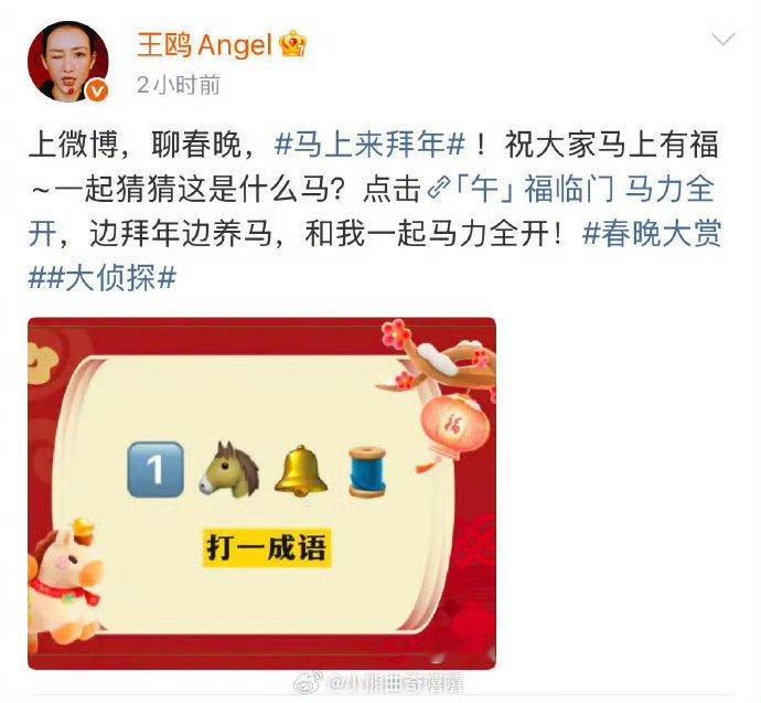 王鸥没有不一马当先的义务大侦探“养马”风潮来袭,王鸥率先用emoji谜语送上新春