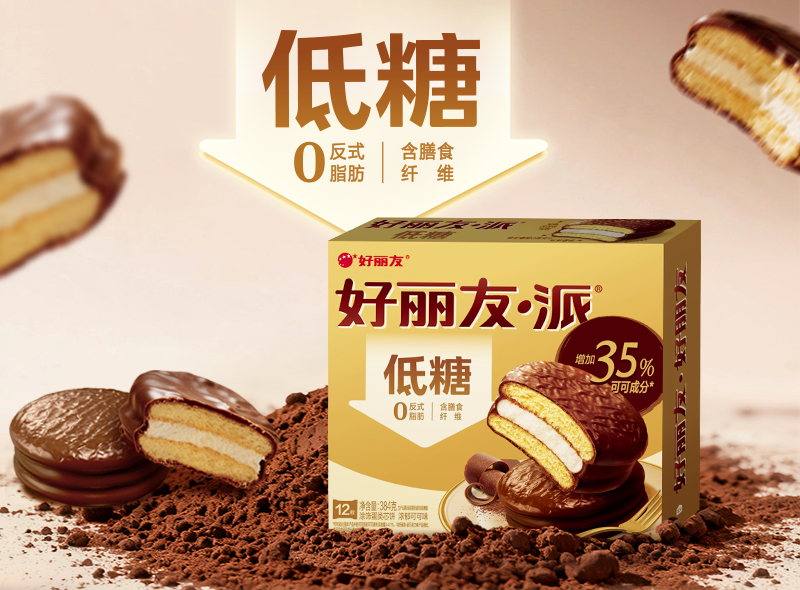 针对近年来消费者对减糖、控糖的关注度不断提高,好丽友推出多款低糖巧克力派,凭借创新配方实现“减糖不减风味”,满足消费者对减糖零食的需求。