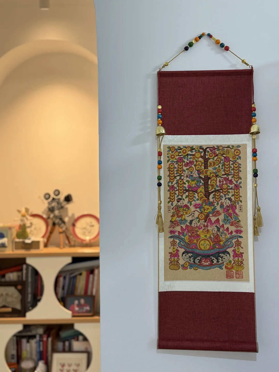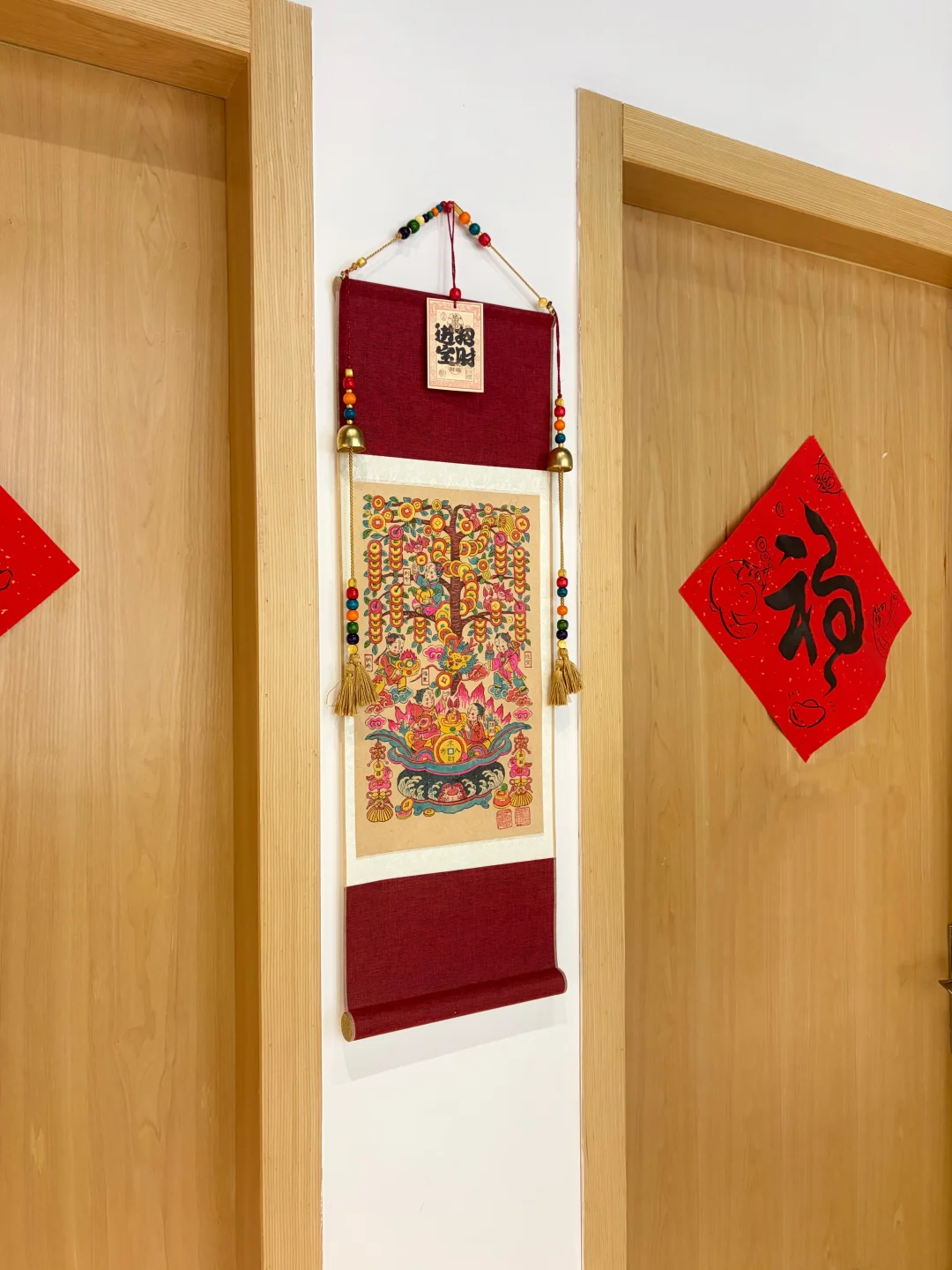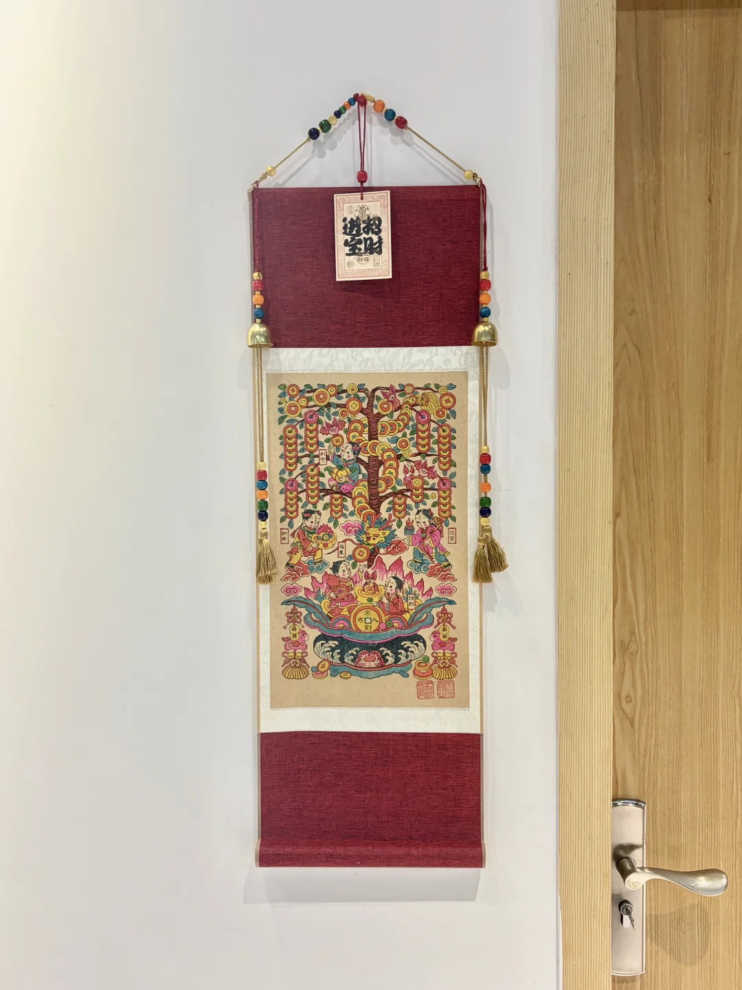 一张不需要装裱的年画 拿回家就可以挂起来~ 马年我们最期待的年味单品!! 画面里有摇钱树、五福童子、聚宝盆, 还有铜钱小马、福蝠等吉祥元素点缀 整体既保留了民俗的热闹 也更符合现代家居审美 挂在家里 会让人对新一年更期待!! 几个位置都很合适: 挂在玄关,一进门就有迎福纳财的年味; 挂在客厅,直接成为空间的视觉中心; 挂在书房或办公室,又多了一种耐看的东方装饰感 我们也考虑到很多人想在新年送礼 特别配了桐木礼盒🎁 有分量也有心意