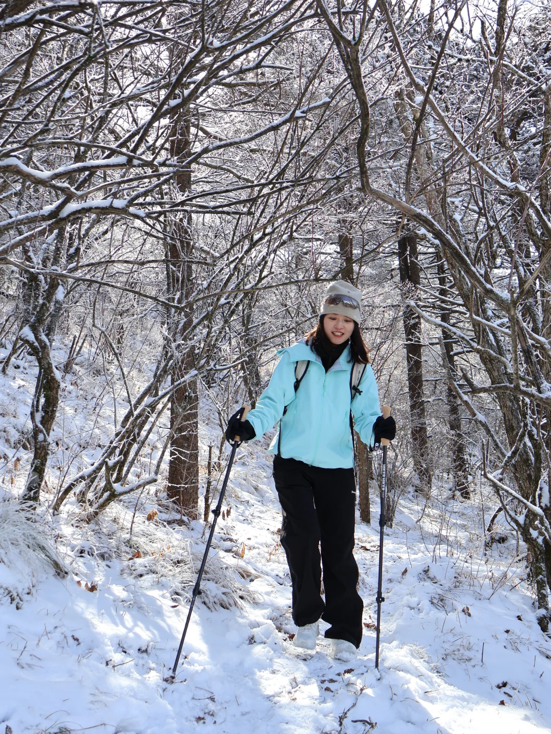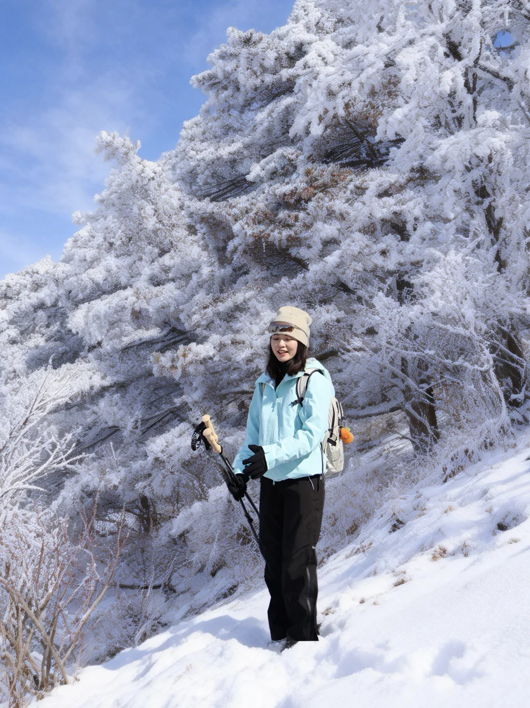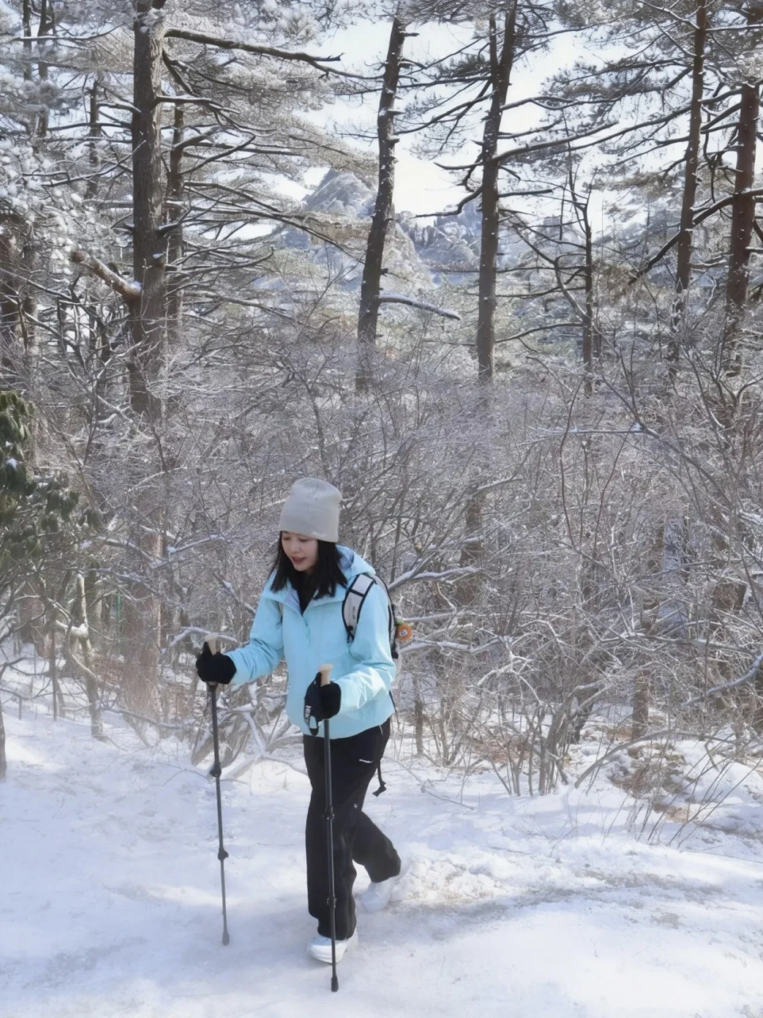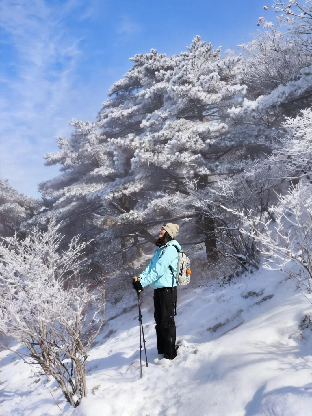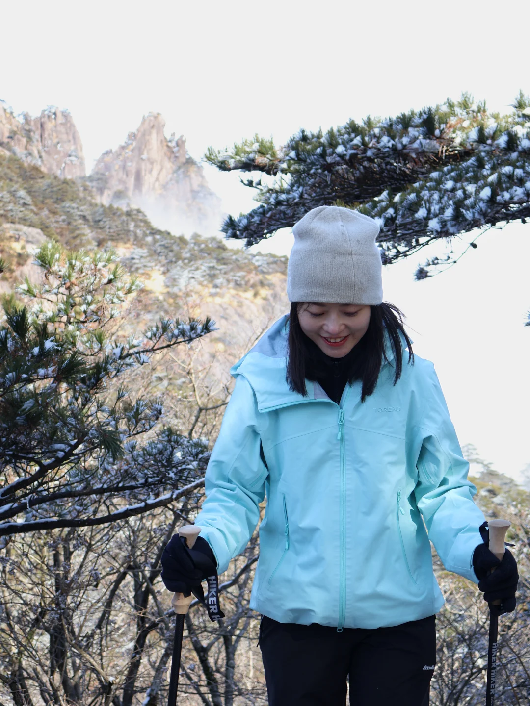 上周末刚爬完黄山,腿已废但心已醉! 还得是咱黄山,一路都在感叹太美了,不是江浙小土坡可比的。一日徒步上下详细攻略奉上! 1️⃣住宿:住山上 vs. 山下❓ 这次我果断选择了住在山下汤口镇(P人实在没定上山上的房间 [向右R]省钱:山上酒店比较贵,设施相对老旧,旺季估计要提前一周订,更适合想看日出的宝子。山下民宿200+就能住得很舒服 [向右R]省时:早上7点坐第一班景区转换车进山,避开人挤人的高峰期,下山才5点,直接赶高铁回家 [向右R]省力:一日上下主打轻装上阵,把大件行李扔在山下,背个小包就出发,爬山完全没负担 2️⃣ 路线:我选择【云谷徒步上,玉屏索道下】 [向右R] 为什么选“云谷徒步上,玉屏索道下”? - 顺路:从云谷寺徒步上,直接看始信峰、狮子峰,然后往光明顶走,最后从玉屏索道下。整体爬升不多,还能把核心景点都逛完 - 错峰:从索道的预定时间就可以大致判断,更多人是从慈光阁(玉屏索道)方向上,会非常拥挤,所以错峰选择人更少的路线 - 结合天气:我们去的当天是早上阴天,中午开始出太阳🌞这样中午到光明顶,前往玉屏索道的途中,其实是全程景色精华部分,正好遇上好天气,拍照更出片~ [向右R]徒步 vs 索道❓ - 徒步:上山单程大概3-4小时,下山1-2小时 - 索道:单程15分钟,但排队时间不可控 选徒步上,索道下:上山时精力充沛,兴奋度高,下山坐索道保护膝盖,该看的点一个没错过! 4️⃣雪后爬山小贴士 [向右R]装备:冰爪+登山杖+手套+帽子全副武装。山顶风大,这次穿的探路者征野硬壳冲锋衣,TIEF-PRO X2面料,风雪都能扛。腋下两侧双向拉链设计,热了就迅速通风散热,两侧加长防水拉链口袋,口袋也超能装。可收紧袖口及底摆,防止风雨倒灌。配色在雪地里也超出片。 搭配探途徒步鞋,GORE-TEX防水透湿袜套+VIBRAM振动橡胶鞋底抓地力强,防水防滑,雪地里行走主打一个安心! 2. 早起:一定要赶第一班景交车(6:30左右)进山。雪后索道运行慢,去晚了排队排到怀疑人生,能省下1-2小时! 雪后的黄山真的太值得!是江浙沪包邮区一个周末就可以打卡的仙境。做好路线规划和防寒准备,就能轻松刷遍黄山雪景