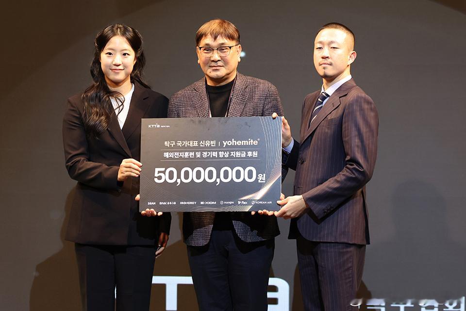 申裕斌去年在重要赛事“WTT中国大满贯2025”“WTT冠军赛蒙彼利埃2025”“WTT冠军赛法兰克福2025”的女子单打项目中均获得铜牌,并在“WTT总决赛香港2025”中夺得混合双打金牌,书写了韩国乒乓球的多项历史纪录。此外,她还在第79届大韩航空全国男女综合乒乓球锦标赛中获得混合双打和团体赛冠军,成为双冠王。凭借这些出色表现,她在“KTTA Awards 2026”上荣获优秀运动员奖,并在这一意义非凡的颁奖典礼上选择为后辈们捐赠,使活动更添意义。