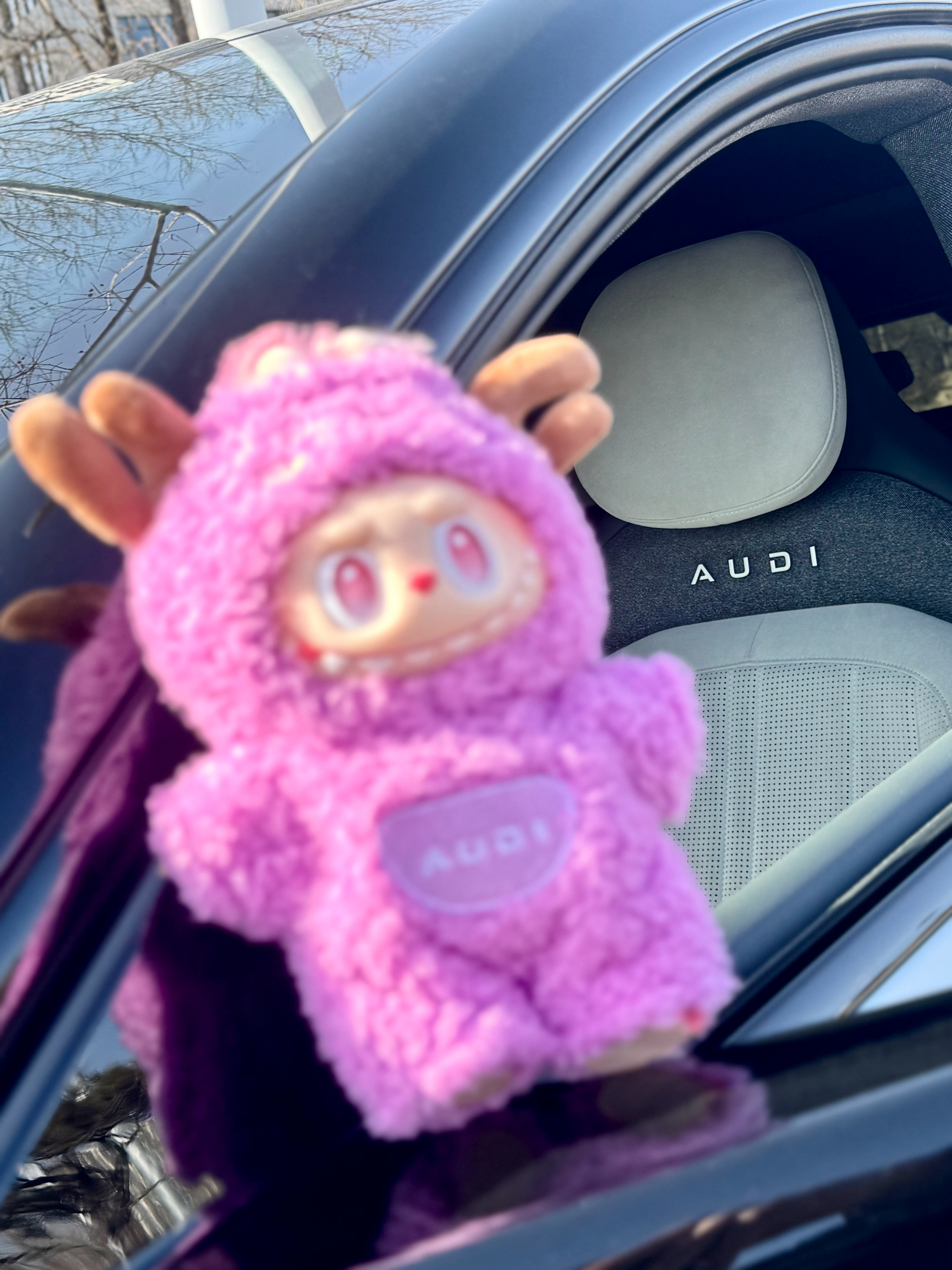 同车多了个伙伴AUDI紫色连体服李楠说道李楠说道大v聊车奥迪labubu