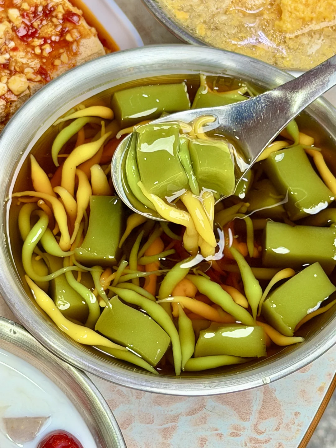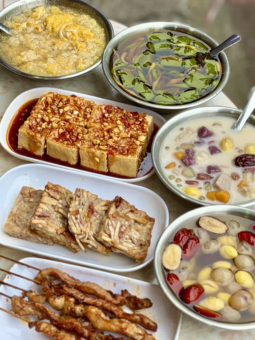 每天从早到深夜凌晨都坐🈵人的一家糖水店! 全是北海本地粉丝,天天爆满! 闭眼点就好,5-6r一碗经典传统糖水! 我超爱ta家 1️⃣五加糖水 2️⃣双色槐花粉+凉草糕 3️⃣米散鸡蛋糖水 ta家除了糖水是招牌,烤串,炸野,还有小吃都是👍🏻 不好吃来找我掰头,我就是很爱这家,这家也确实是我们本地人超多常客的糖水甜品店! 冲就完事了!