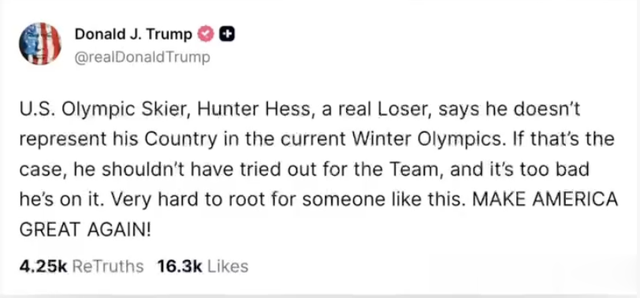 对此,美国总统特朗普于2月8日在其自创社交平台上对赫斯的言论予以猛烈抨击。