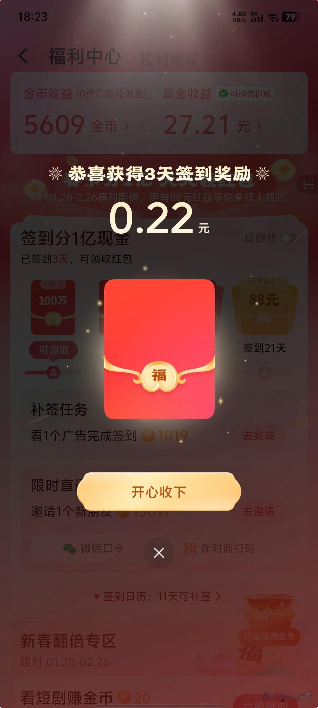 这个签到分现金的活动,感觉有点问题,开始分百万的时候011,到了分千万0.18,分一亿就变成0.14,不同的号金额不一样,这手机的番茄音乐前面几天都没有的,今天给我推了,做了三天任务补签分百万那个就0.22。不是已经分完了?我想这些不过只是数字,就是参与活动的都分那0.1-02左右的金额。后面还有七天不想签到了。