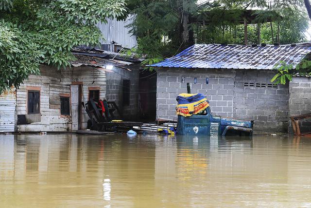 当地时间2026年2月9日,哥伦比亚蒙特里亚,锡努河因降雨泛滥后淹没一座房屋。