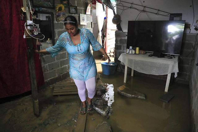 当地时间2026年2月6日,哥伦比亚蒙特里亚,居民在被淹的家中行走。