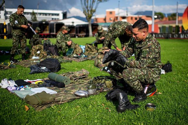 当地时间2026年2月9日,哥伦比亚波哥大,灾害管理与预防工程旅的士兵准备为科尔多瓦和蒙特里亚地区的洪水提供救援和人道主义援助。