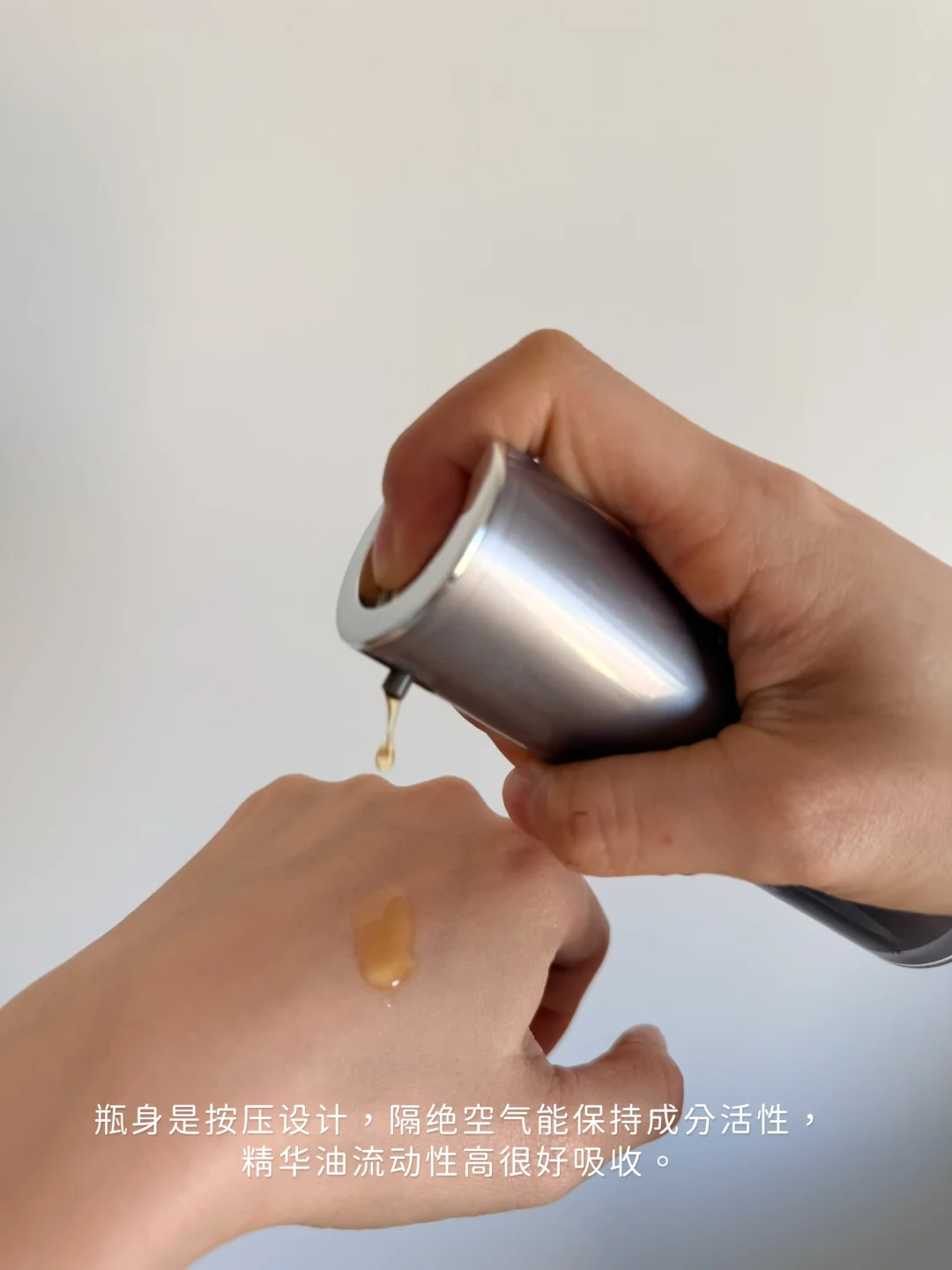 👉🏻先说使用感,首先瓶身是按压设计很好,隔绝空气能保持成分活性,也不用担心一次量多,每次按压一泵就好。因为是小分子油非常好吸收,精华油的气味我超级喜欢,淡淡的茉莉、鸡蛋花、玫瑰、晚香玉的混合精油气味,按压上脸配合按摩有种芳疗的治愈感,让睡前护肤的整个过程很有仪式感,这个气味还能舒缓助眠缓解压力,无酒精无色素敏肌也友好。
