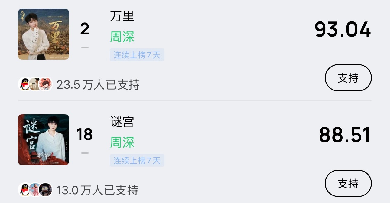 周深 📣 2.10 巅峰潮流 📣米米们晚上好,每歌做6个动作路径:Q音-乐馆-排行-潮流巅峰