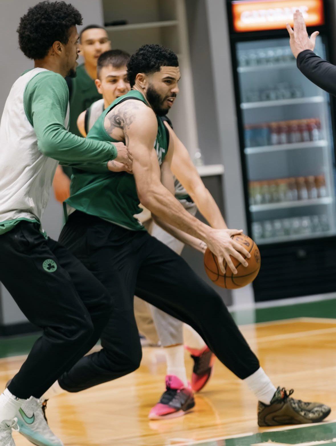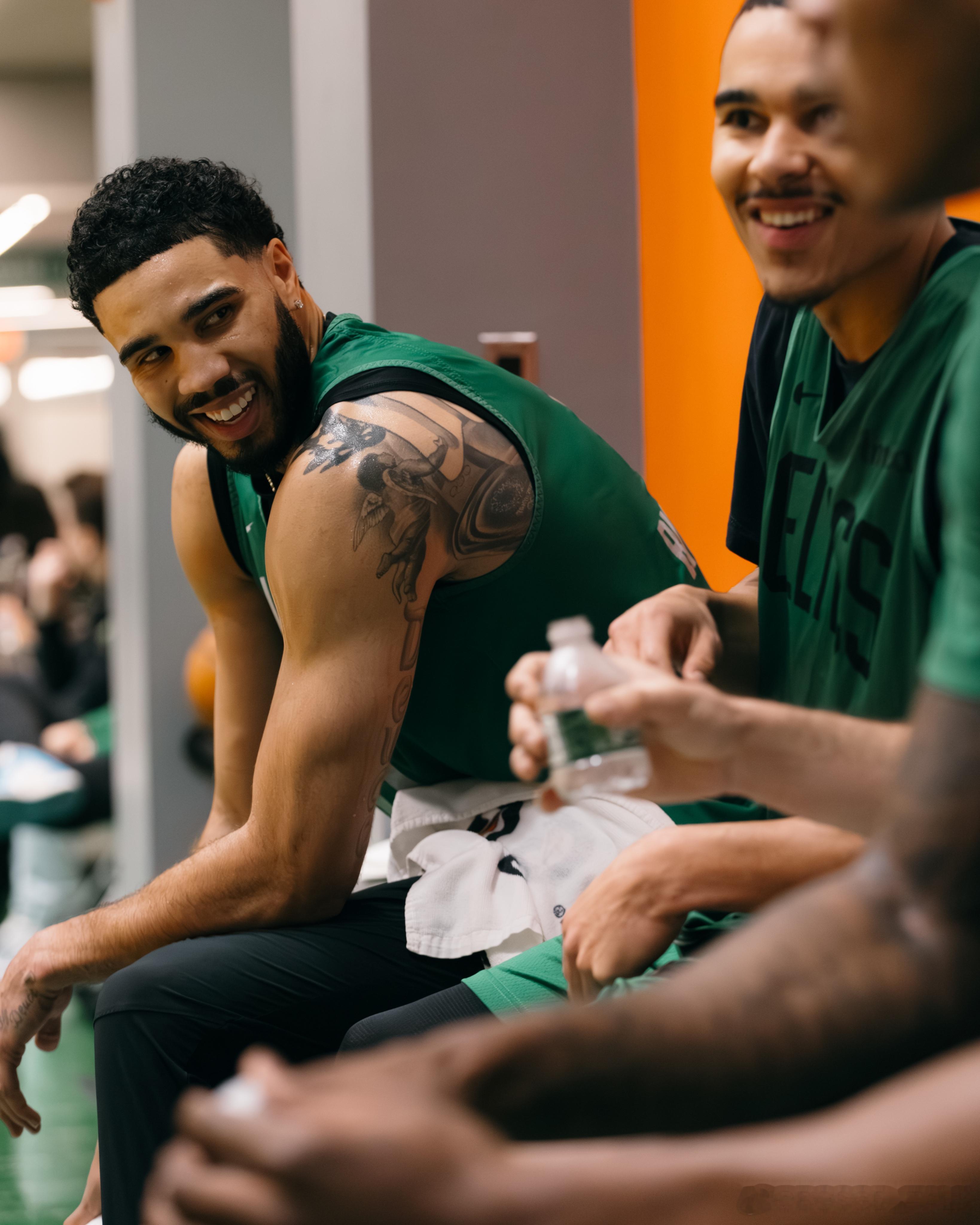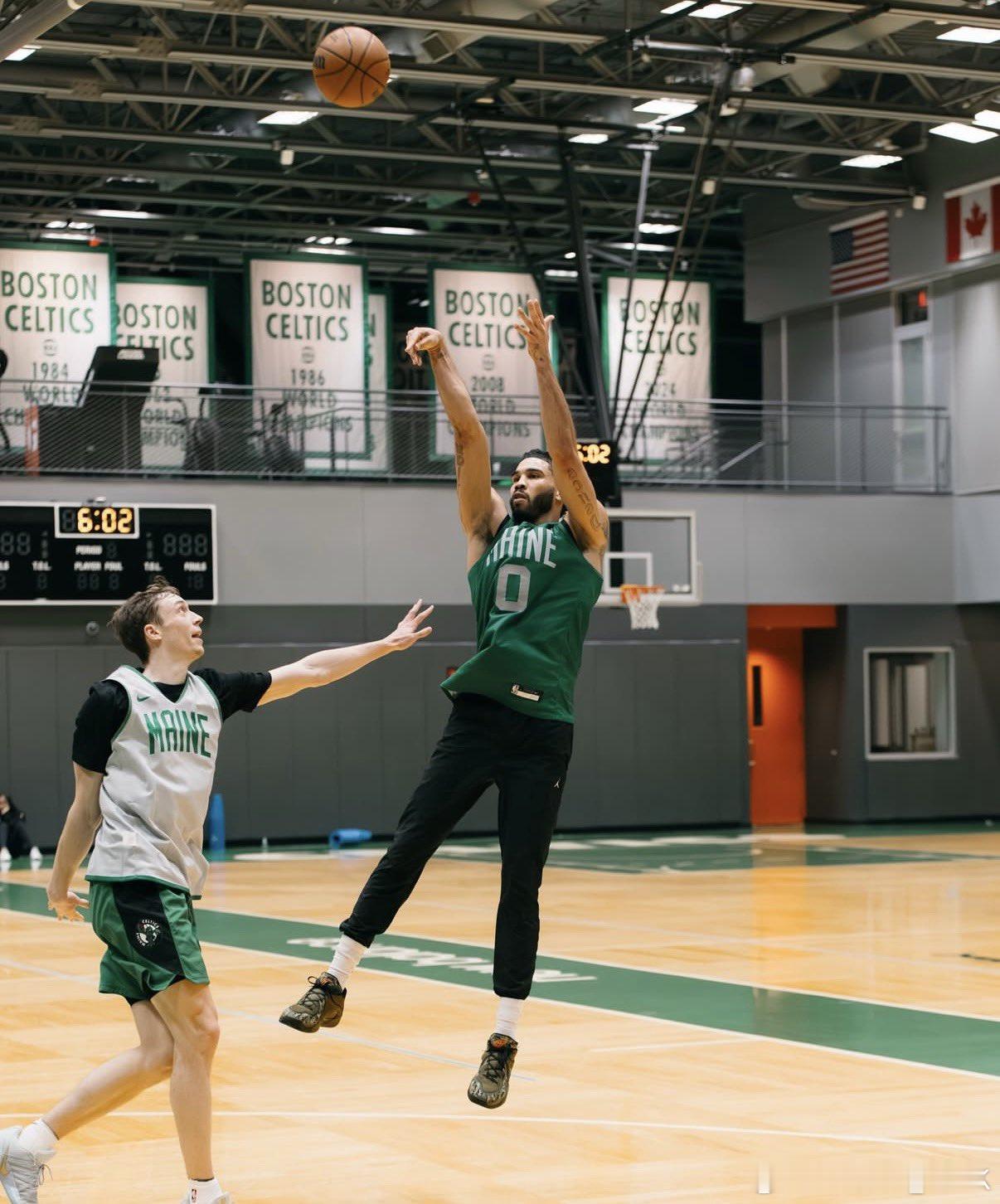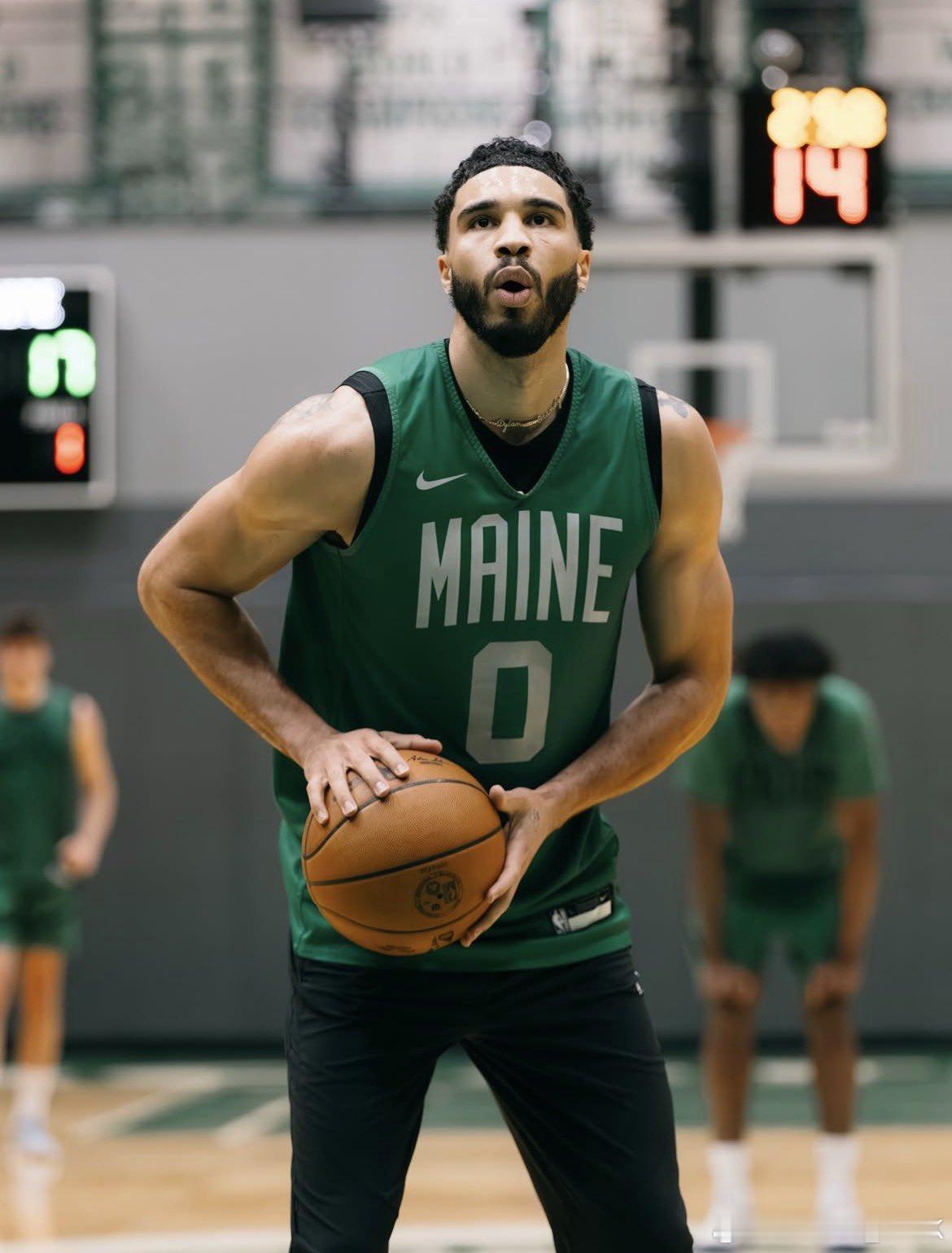 塔图姆加盟缅因凯尔特人珍贵照片。ps:他又指天凯尔特人nba