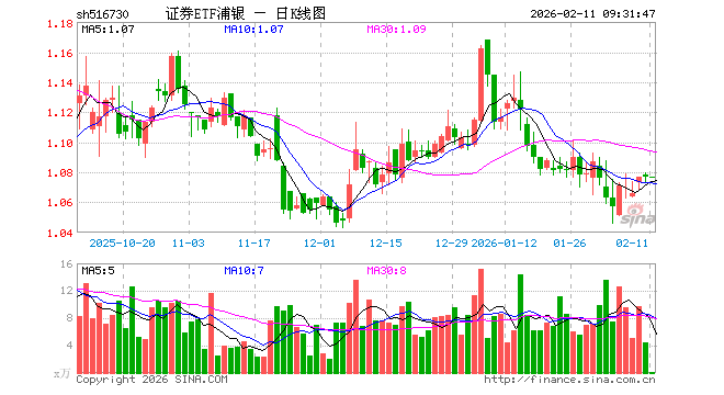2月11日,证券ETF浦银(516730)开盘涨0.00%,报1.077元。证券ETF浦银(516730)重仓股方面,中信证券开盘涨0.07%,东方财富跌0.17%,国泰海通涨0.05%,华泰证券涨0.18%,广发证券涨0.09%,招商证券跌0.12%,东方证券跌0.10%,兴业证券涨0.00%,申万宏源涨0.00%,中金公司涨0.03%。