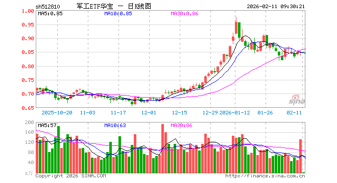 2月11日,军工ETF华宝(512810)开盘涨0.00%,报0.849元。军工ETF华宝(512810)重仓股方面,中国船舶开盘跌0.14%,光启技术涨0.04%,中国卫星跌0.10%,航天电子涨0.04%,航发动力跌0.73%,中航沈飞跌0.29%,中航光电跌0.58%,航天发展涨0.00%,菲利华涨1.11%,睿创微纳跌0.69%。