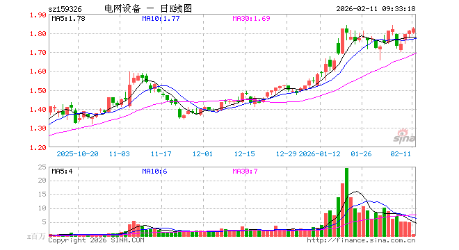 2月11日,电网设备ETF(159326)开盘跌0.50%,报1.800元。电网设备ETF(159326)重仓股方面,特变电工开盘跌0.54%,思源电气跌0.53%,国电南瑞跌0.04%,中天科技跌2.22%,亨通光电跌4.36%,宏发股份涨0.49%,正泰电器跌0.49%,金盘科技跌0.01%,东方电缆涨0.84%,中国西电跌0.07%。