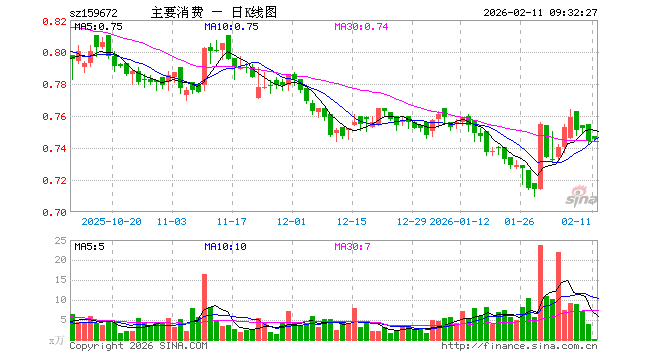 2月11日,消费ETF博时(159672)开盘涨0.40%,报0.747元。消费ETF博时(159672)重仓股方面,伊利股份开盘涨0.19%,贵州茅台涨0.00%,牧原股份跌0.09%,五粮液跌0.18%,温氏股份跌0.06%,泸州老窖跌0.01%,山西汾酒涨0.02%,海天味业跌0.05%,东鹏饮料跌0.61%,海大集团跌0.17%。
