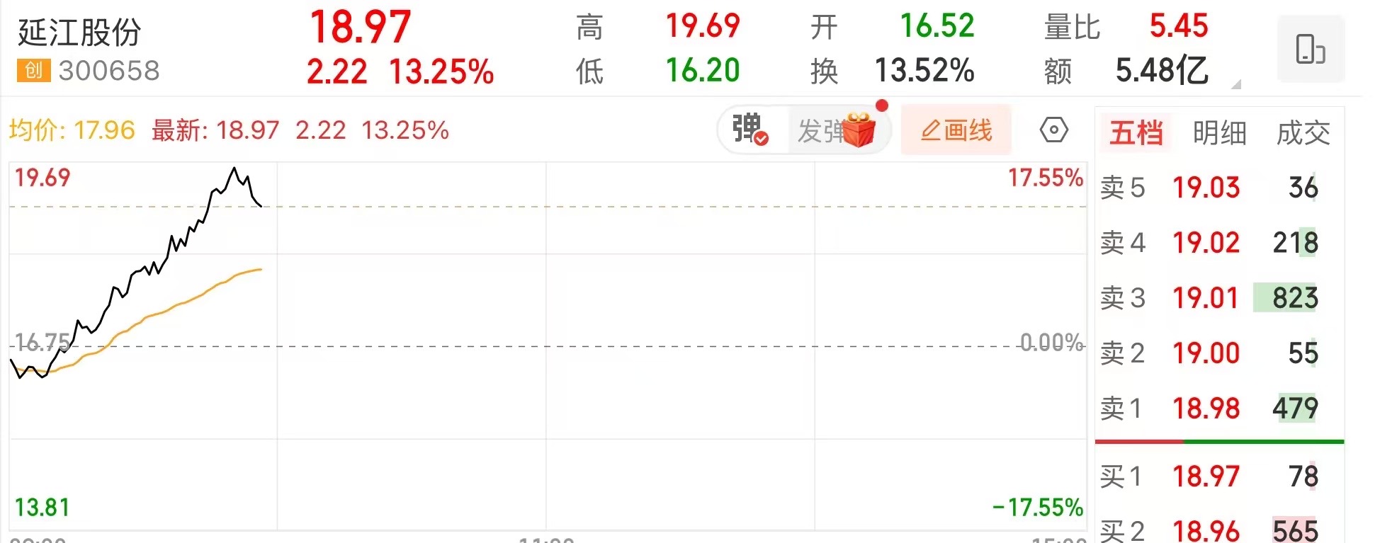 上证报中国证券网讯(记者李雁争)2月11日,延江股份盘中一度涨超17%,截至10时26分,涨13.25%,报18.97元/股。