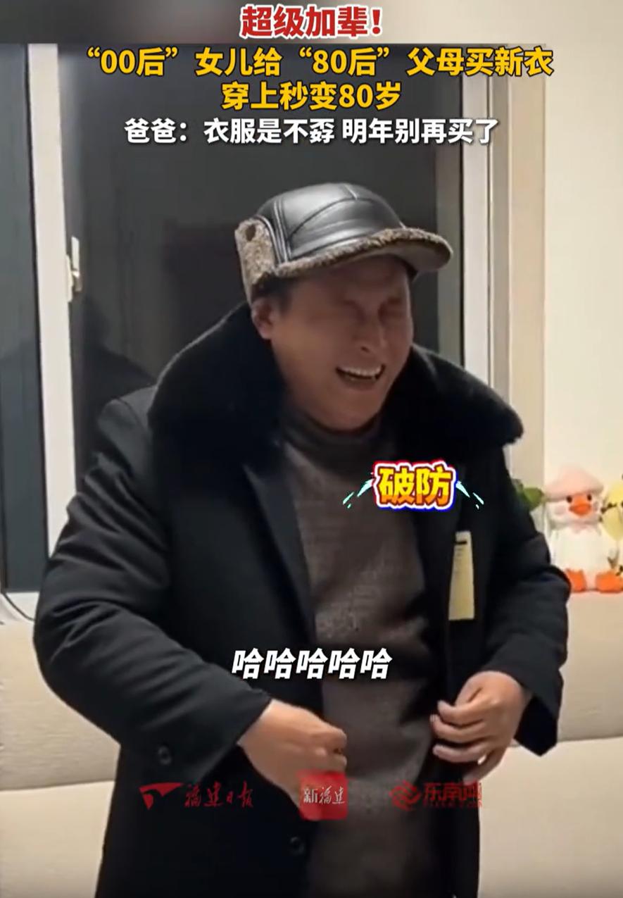 笑不活了!山东,一名00后女儿回家过年,提前给父母买了件新衣服,谁知衣服是新的,版型却相当老气,80后的父母穿上后直接变成了50后,父亲调侃说:衣服不孬,但以后别买了! 女生去年刚刚毕业参加工作,今年回家过年,也是第一次给父母买衣服,所以爸爸在看到女儿买来的衣服后,心里高兴,立刻就试穿上身 女儿给爸爸挑的是一件黑色大毛领的行政夹克,还配了顶带年代感的皮帽;给妈妈准备的则是一件花色棉袄。两人一穿上,互相打量一眼,当场就笑得直不起腰,两人调侃自己就是赵本山小品里的白云和黑土 女儿自己也傻眼了,明明是按着“爸妈该有的样子”去选的,怎么一穿出来,像是从隔壁年代剧剧组借来的行头 网友看了也乐,说这00后的审美怎么比爸妈还怀旧 其实这种事挺常见的,年轻人总觉得父母该穿得稳重些、成熟些,一不小心就往老成了选。而很多85后的父母,实际心态和外形都还年轻,平时可能穿得比孩子还时髦。两代人对“适合”的理解,一不小心就错位了 这也是个提醒,给父母买东西,未必非要往“年纪大就该穿什么”上去靠。不妨平时多留意他们的喜好,或者干脆带他们一起去选。很多父母不是不喜欢新东西,只是舍不得买,或者不习惯自己挑。儿女陪着,他们可能就更放得开 说到底,礼物只是个纽带,关键还是那份愿意为他们花心思的心意。哪怕这次买“老气”了,下次一起逛街时再笑笑这次的事,不也是挺好的交流吗?一家人的感情,正是在这些笑闹和磨合里,慢慢变得更实在的