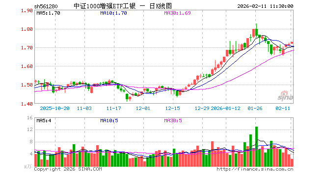 2月11日,截止午间收盘,中证1000增强ETF工银(561280)涨0.52%,报1.726元,成交额408.45万元。中证1000增强ETF工银(561280)重仓股方面,震裕科技截止午盘跌0.33%,宁波华翔跌1.25%,普利特涨1.00%,同方股份跌0.32%,凯盛科技跌0.89%,东方铁塔涨3.27%,中孚实业涨0.60%,利尔化学涨1.33%,高能环境涨2.25%,立中集团涨0.70%。