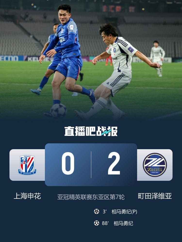 直播吧2月11日讯亚冠精英联赛东亚区第7轮,上海申花主场0-2不敌町田泽维亚。