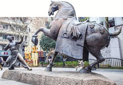 马塍广场源于“钱王养马”典故的雕塑