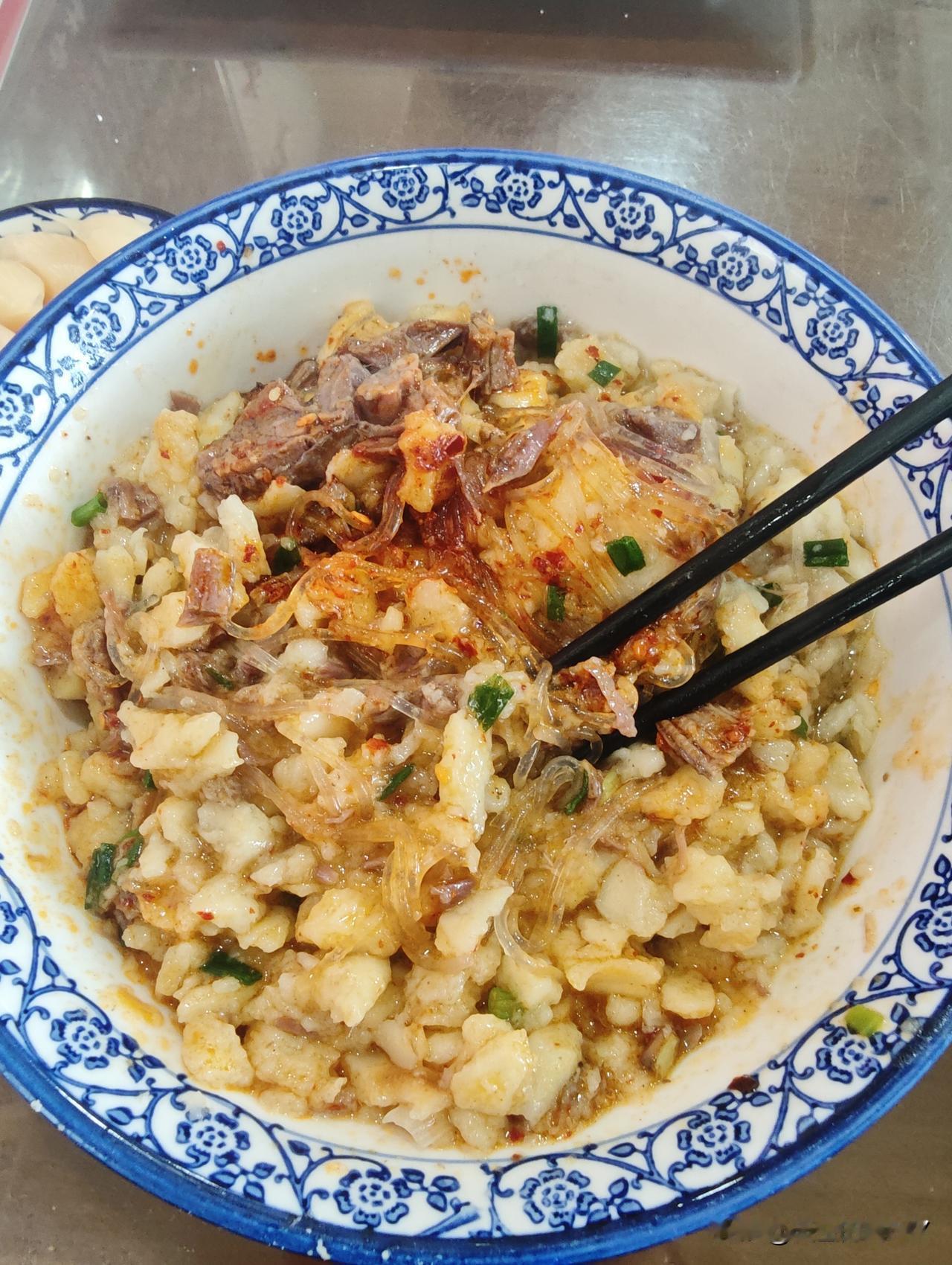 今天中午突然馋泡馍了,便走进一家泡馍馆子。要了两个馍自己掰,还点了一个拼盘。我要了份干的,不要汤,我偏爱油泼辣子,对辣椒酱没啥兴趣。都说“西安人的城墙下是西安人的火车”,在西安,泡馍可是西安人隔一阵不能不尝的美食。