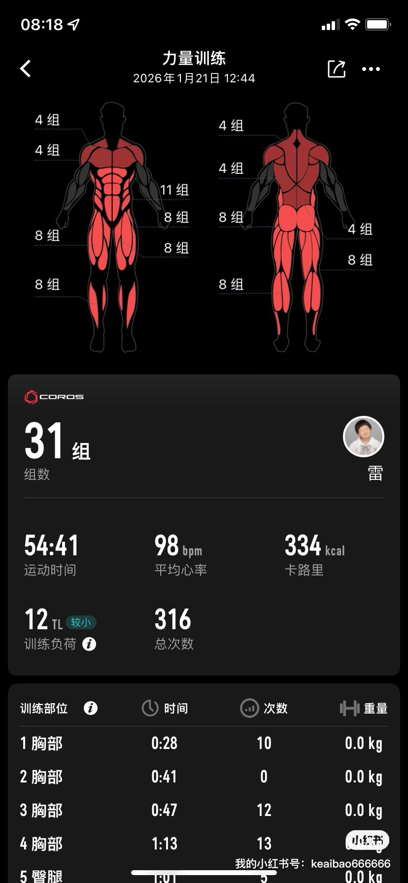 橙友@雷雷雷:100天,10公里跑进40分钟,工作忙已忘是第几天,断断续续,今日练个力量吧!完成31组深蹲俯卧撑,汗珠砸地时,仿佛听见新春的鼓点。