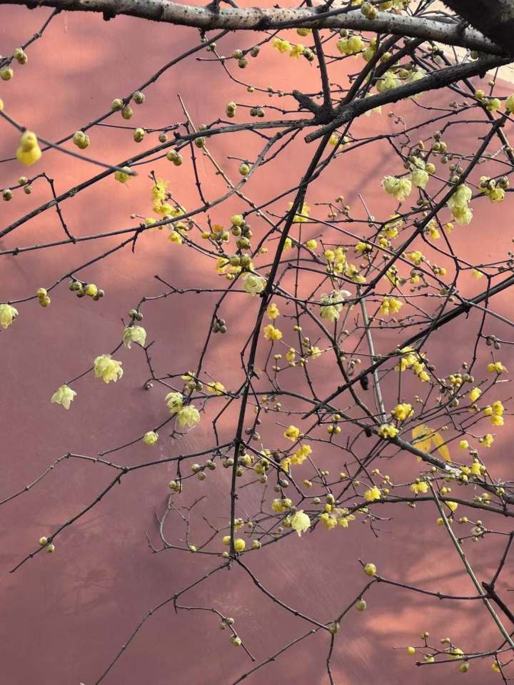 #新年启程#钱王祠里蜡梅绽放,金蕊映红墙。携新愿缓步