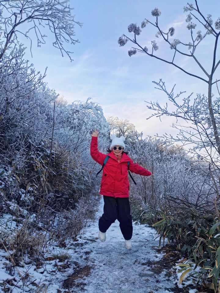 橙友@言午姑娘:2026第二次追雪成功!今日挑战鸬鸟山罗窑坞入口,90°垂直台阶爬坡如攀云梯,雾凇缀满枝头,恍若闯入琉璃仙境。