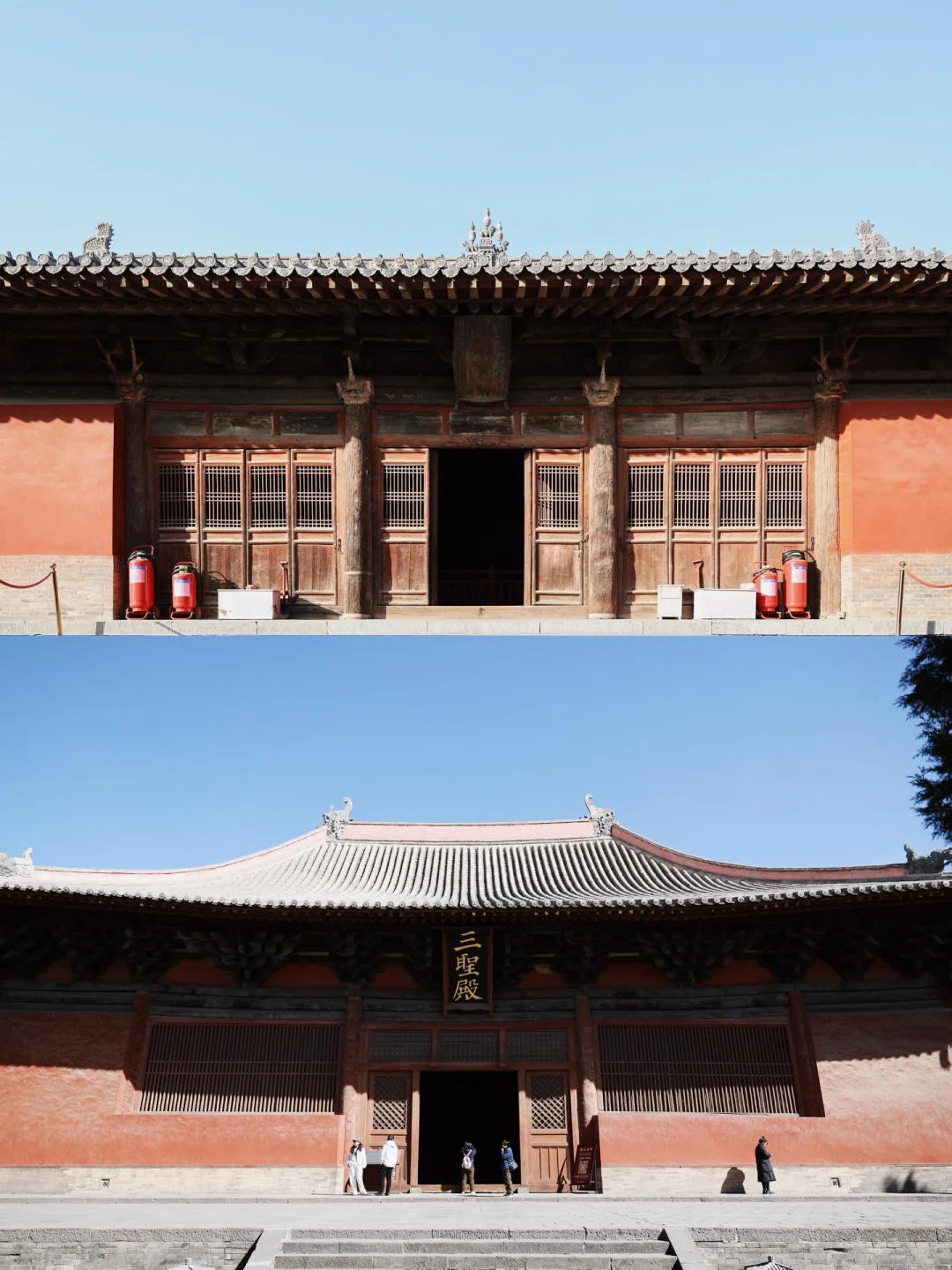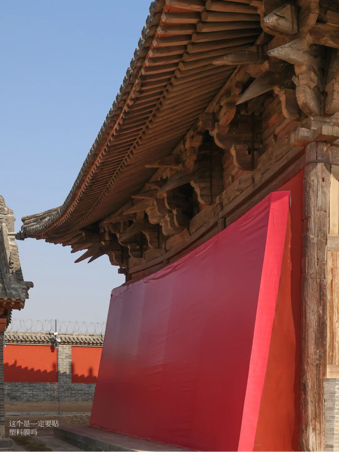 偶然看见一张山西繁峙公主寺的照片,博主发布笔记的时间是2019年,彼时公主寺外还颇有古意,没有什么现代工业制品。但2026年1月,我去参观,门外已安上铁栅栏、检票口(但不收费 需刷身份证进入),还有亚克力展架等等各种。
