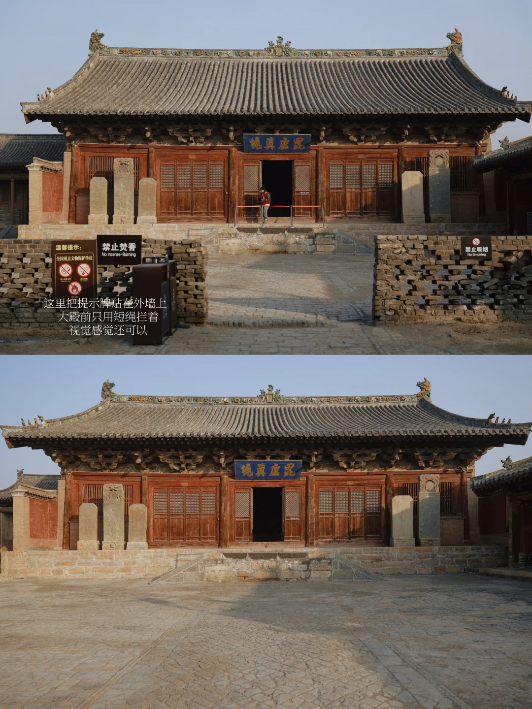 更别提我在其他古迹前看到明晃晃的蓝绿色大垃圾桶、各种不明杂物。我当然知道古建筑需要保护,木构更是需要防火,但有些东西真的一定要堆在古建的前面吗?