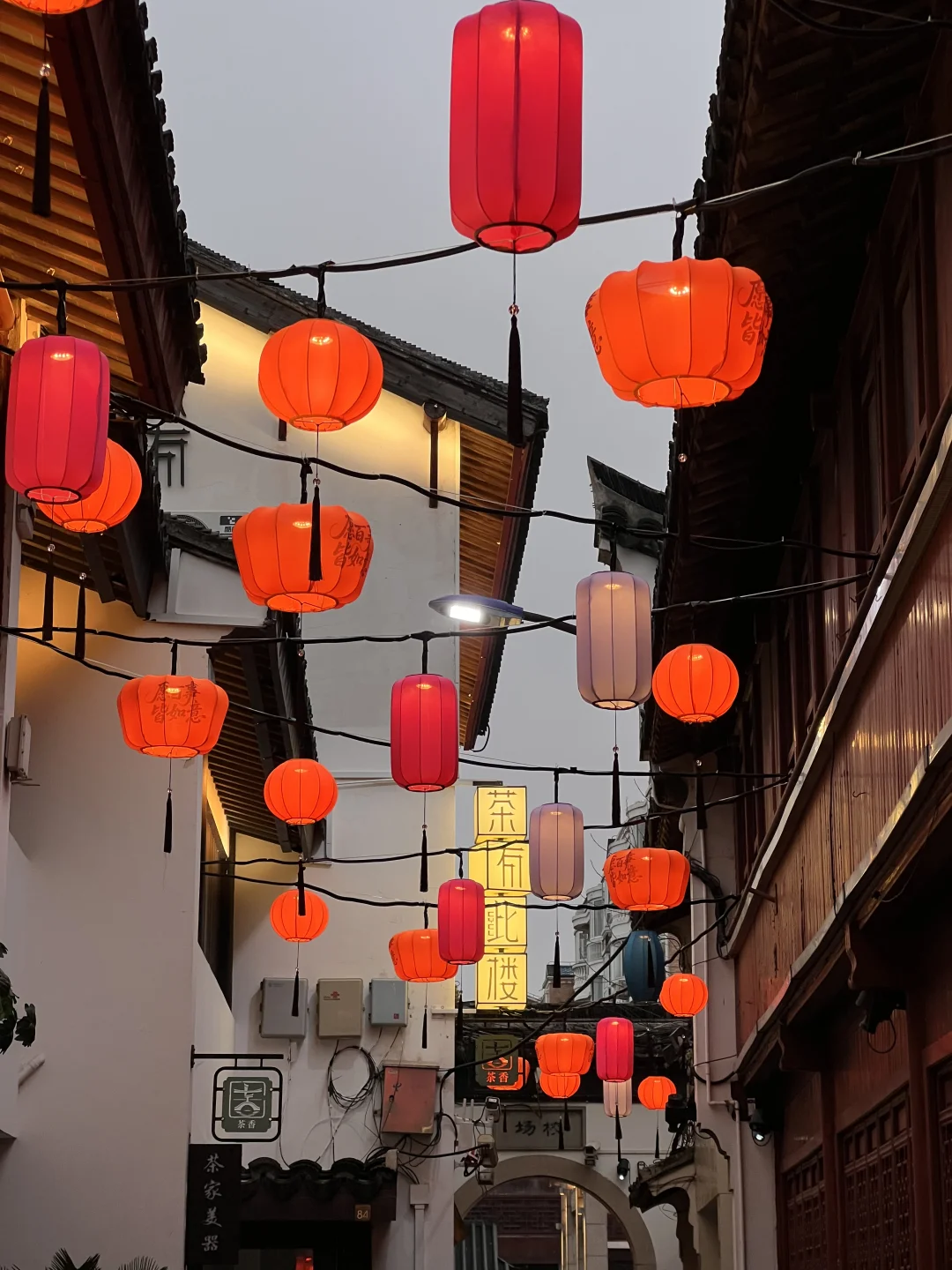 古镇呈「非」字型 小街道里也挂着不同的灯笼