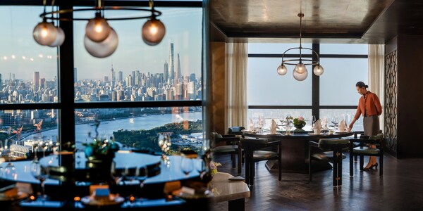 御苑中餐厅以蓝绿色铺陈空间,如一方静谧碧玉与金属线条的雅致相映成趣。立于落地窗前,浦江蜿蜒,城景如画,西岸滨江的粼粼波光与城市天际线错落轮廓尽收眼底,将烟火气与诗意精妙糅合。味觉之外,更是视觉与心境的双重盛宴。入口处的独立吧台打破传统中餐厅的布局定式,茶艺师以茶入酒、以酒融香,东方美学的现代艺术表达,在杯盏碰撞间缓缓流淌。五间全江景独立包房与一间半开放式私密雅间,皆引自然天光倾泻而入,各自框景如画,营造出兼具仪式感与宁静的艺术用餐空间。个性化定制菜单和专人侍应服务,让宾客摒除一切繁杂干扰,沉浸于美食本身的滋味。无论家庭聚会亦是商务宴请,御苑中餐厅都能以细致入微的服务,满足宾客的多样化需求,让宾客沉浸于美食与景致交织的艺术氛围之中。