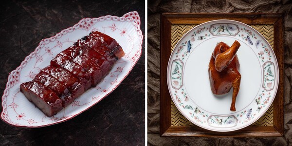伊比利亚叉烧(左)脆皮玻璃乳鸽(右)