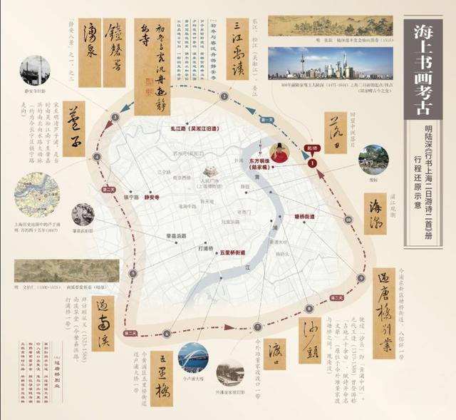 陆深《行书上海二日游诗二首》册行程还原图