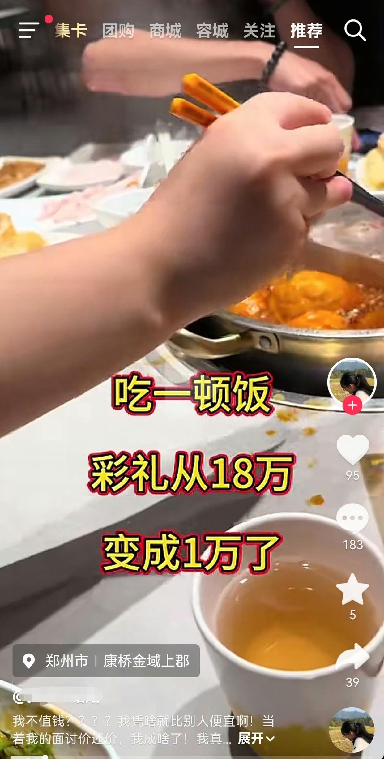 一个越挫越勇的00后女孩…. 近日,在网上看到一个25岁的姑娘,她将要和男朋友结婚了,原定彩礼18万,结果吃了一顿饭后变成了1万,她很生气,凭什么她就要比别人便宜… 她说她虽然生病了,不能工作赚钱,但还可以生育,所以想多要点彩礼,以后才有底气…. 话说激素紊乱还能怀上吗?应该不容易吧…. 不过她这言论也是让人无语,拿别人的钱,自己有底气,就因为自己很废,所以得多要钱,也不知道男方图啥呀…