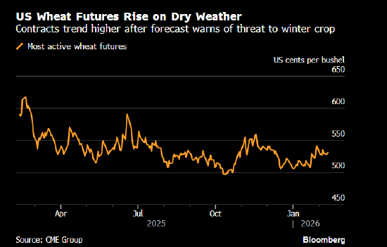 LachstockConsulting在报告中指出,美国冬季反常的温暖天气可能减少积雪覆盖并刺激作物提前生长,使作物更易受后期寒流影响。